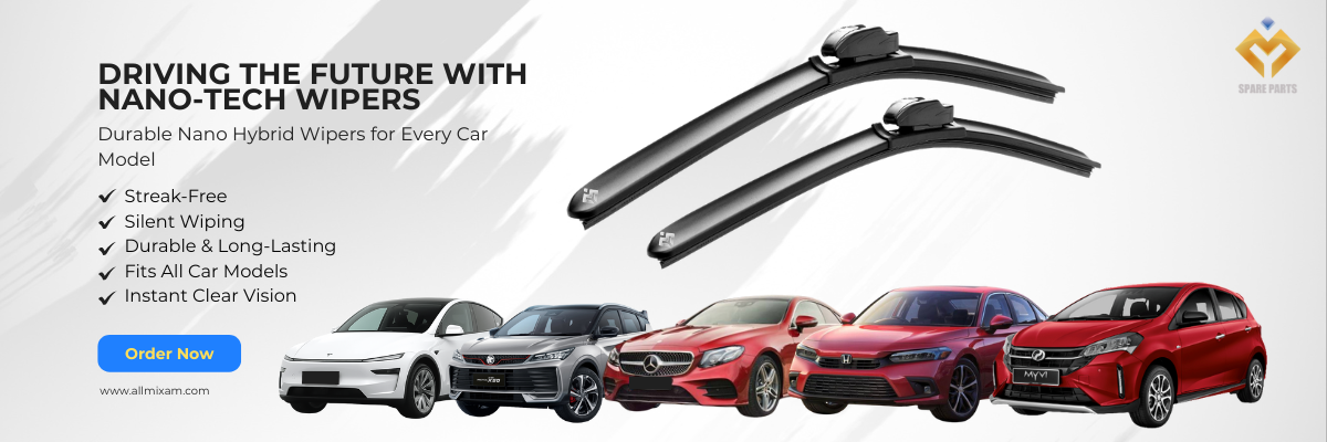 All Mix Auto Mart brings you Nano Rubber Wiper Blades designed to withstand Malaysia & Singapore’s tropical heat, heavy rain, and daily driving conditions. Crafted with high-grade rubber enhanced with nano technology, these wipers offer a perfect balance of performance, durability, and affordability.