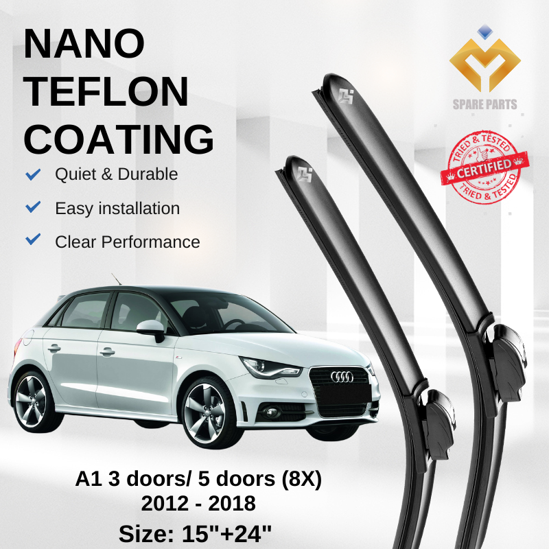 Audi A1 3/5doors 8X (2012 - 2018) Premium Japan Tech Car Wiper 15"+24" Type 04 Clip, Free Microfibre Cleaning Cloth
