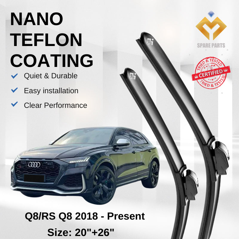 Audi Q8/RS Q8 (2018-Present) Premium Japan Tech Car Wiper 20”+26” Type 04 Clip, Free Microfibre Cleaning Cloth