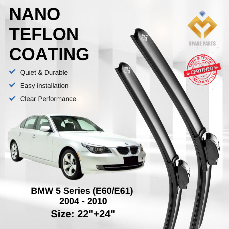 BMW 5 Series (E60/E61) 2004-2010 Premium Quality Japan Tech Car Wiper 1set 22"+24" Type 05 Clip-Includes Free Gift!