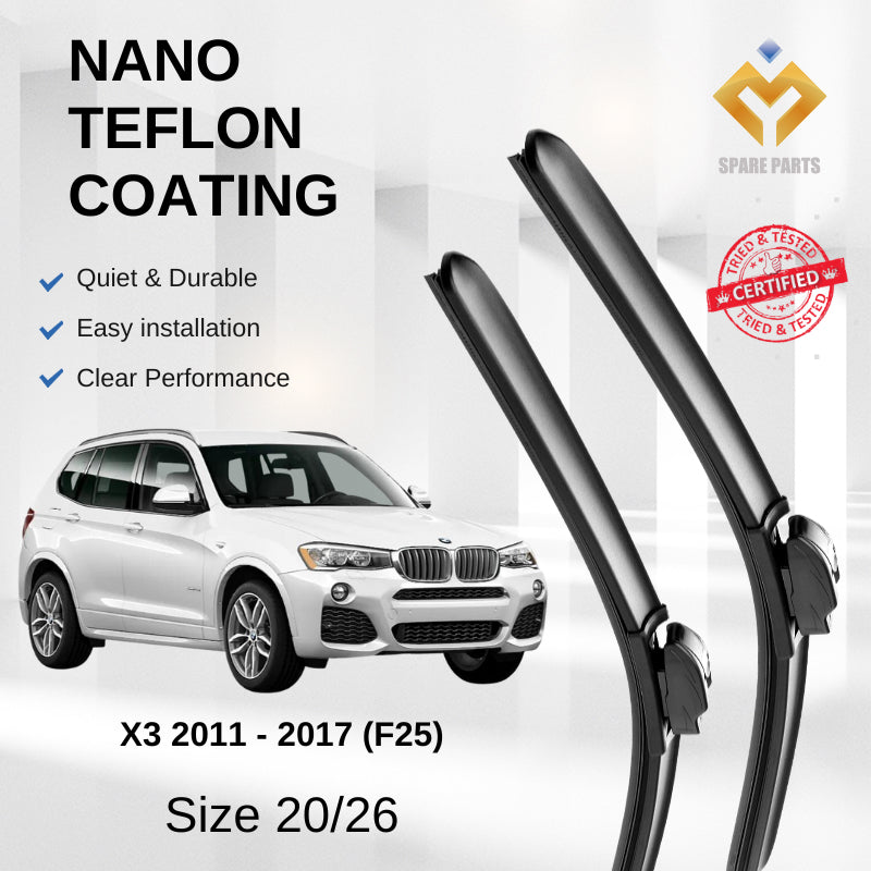 BMW X3 2011-2017 F25 Premium Quality Japan Tech Car Wiper 1set 20"+26" Type 03 Clip-Includes Free Microfibre Cloth!