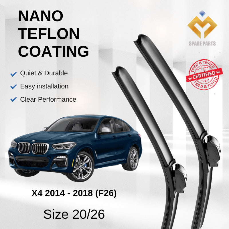 BMW X4 2014-2018 F26 Premium Quality Japan Tech Car Wiper 1set 20"+26" Type 03 Clip-Includes Free Microfibre Cloth!