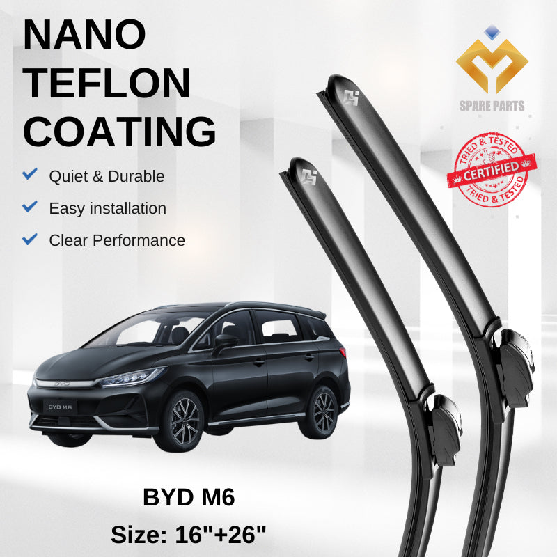 BYD M6 2024-Present Premium Japan Tech Car Wiper Accessories 16”+26” Type 01 Clip- Includes Free Microfibre Cloth!