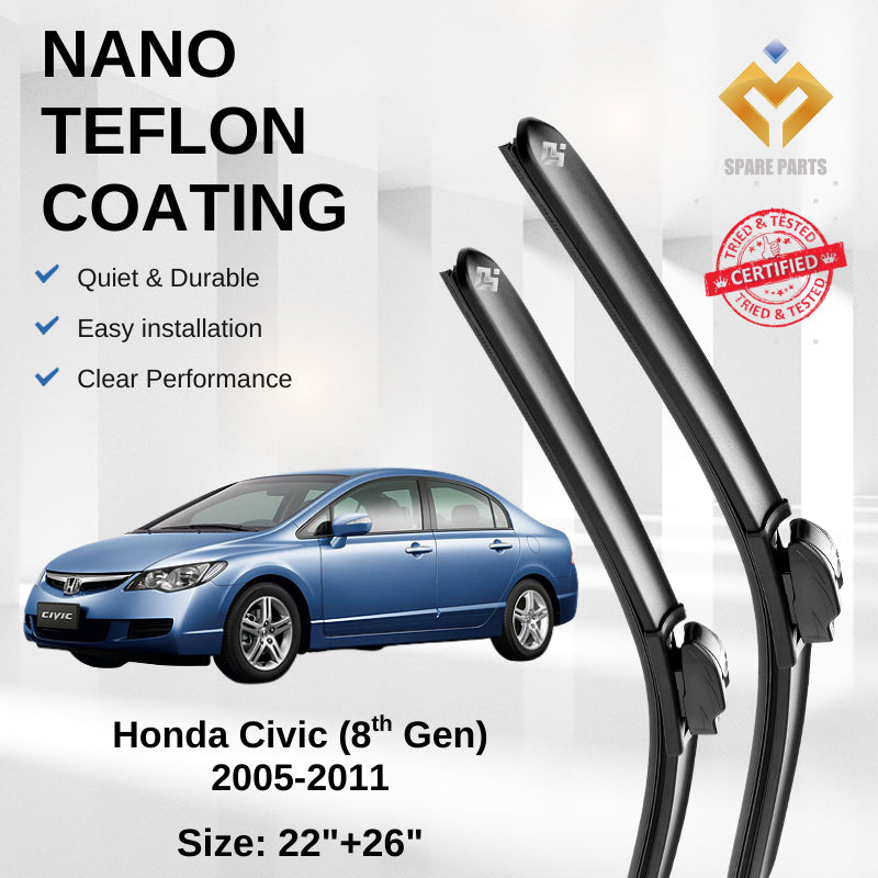 Honda Civic 8th 9th Gen Premium Quality Japan Tech Car Wiper Accessories 22"+26" Universal Hook-Free Microfibre Cloth