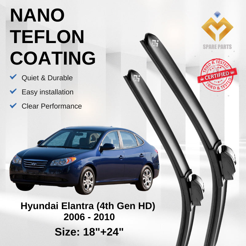 Hyundai Elantra 4th Gen HD 2006-2010 Premium Quality Japan Tech Car Wiper Accessories 18"+20" U Hook-Includes Free Gift!