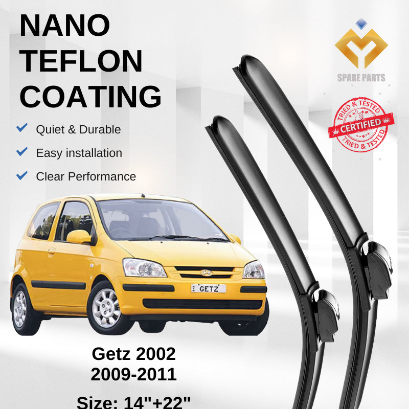 Hyundai Getz 2002 Year 2009-2011Premium Quality Japan Tech Car Wiper Accessories 14"+22" U Hook-Includes Free Gift!