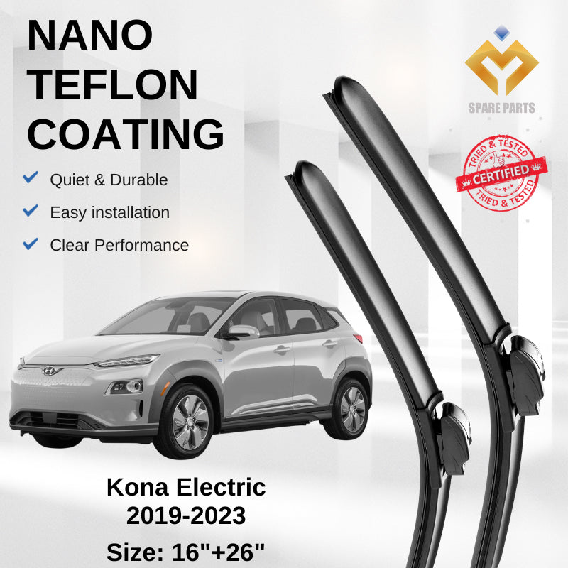 Hyundai Kona Electric 2019-2023 Premium Quality Japan Tech Car Wiper Accessories 16"+26" Universal Hook-Free Cloth!