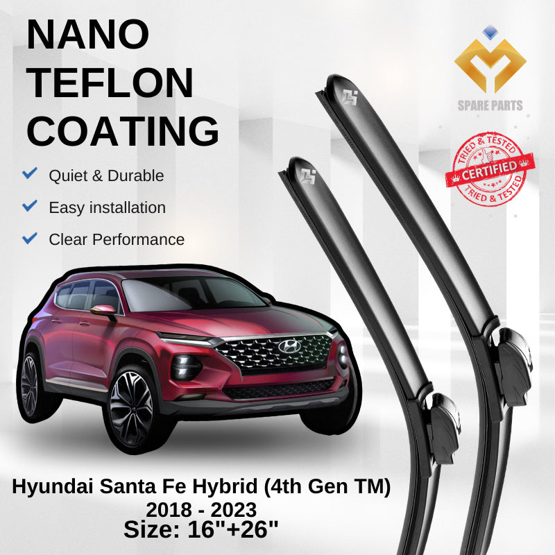 Hyundai Santa Fe Hybrid (4th Gen TM) 2018-2023 Premium Quality Japan Tech Car Wiper 1set 16"+26" U Hook With Free Gift!