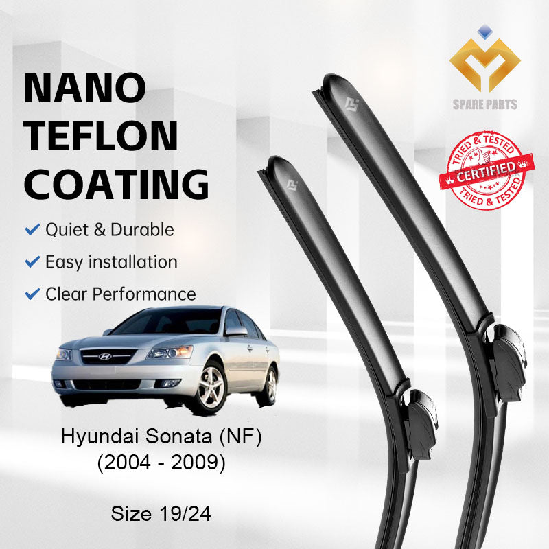 Hyundai Sonata 5th Gen NF 2004-2009 Premium Quality Japan Tech Car Wiper Accessories 19"+24" U Hook-Includes Free Gift