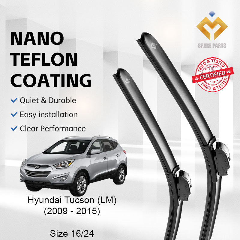 Hyundai Tucson 2nd Gen LM 2009-2015 Premium Quality Japan Tech Car Wiper 1set 16"+24" Universal Hook-Includes Free Gift!