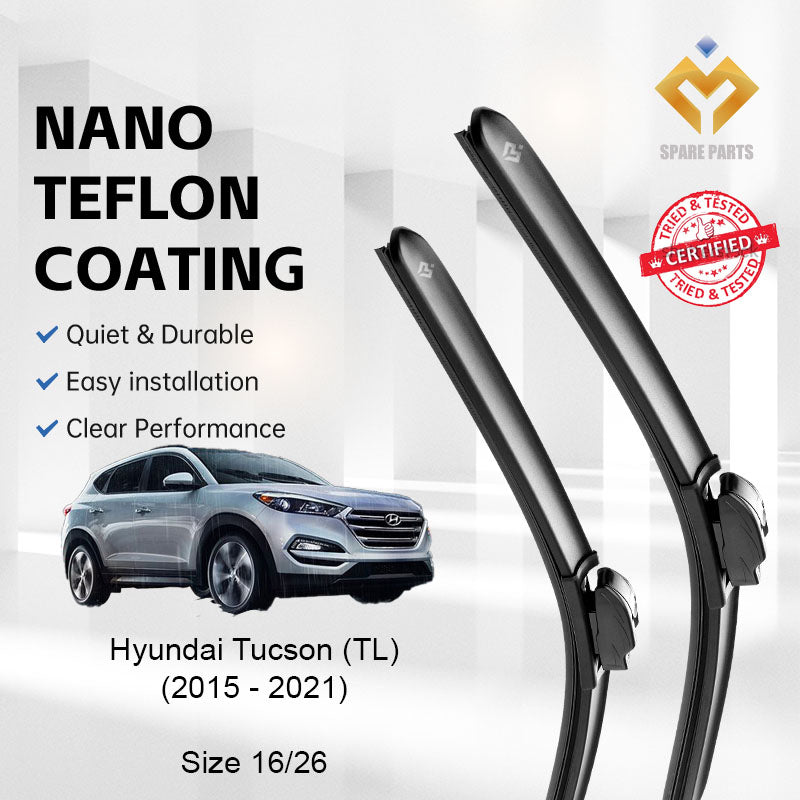 Hyundai Tucson 3rd Gen TL 2015-2021 Premium Quality Japan Tech Car Wiper Accessories 16"+26" U Hook-Includes Free Gift