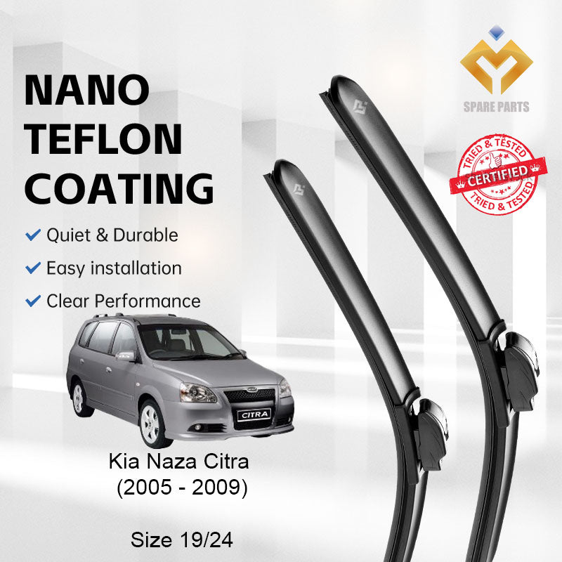 Kia Naza Citra 2005 Premium Quality Japan Tech Car Wiper Accessories 19"+24" Universal Hook-Free Microfibre Cloth!