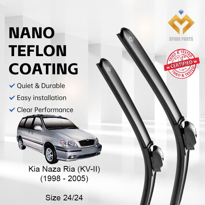 Kia Naza Ria 1st Gen 1998 Premium Quality Japan Tech Car Wiper 1set 24"+24" U Hook Free Microfibre Cloth