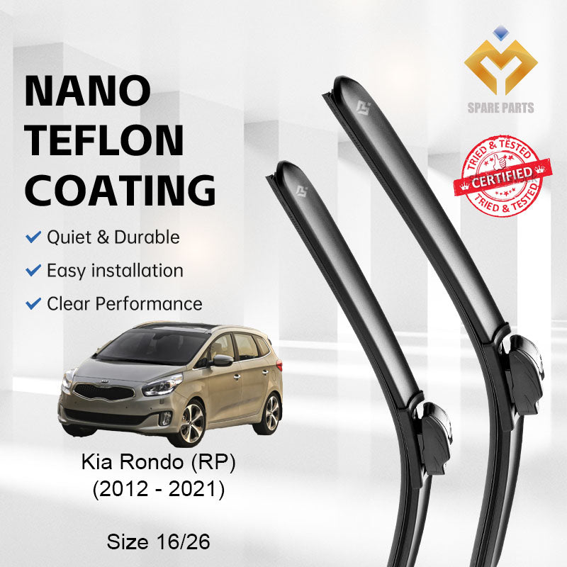 Kia Rondo 2nd 3rd Gen Premium Quality Japan Tech Car Wiper 1set 16"+26" U Hook Free Microfibre Cloth