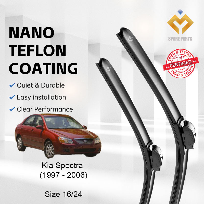 Kia Spectra Sephia 1997 Premium Quality Japan Tech Car Wiper 1set 16"+24" U Hook Free Microfibre Cloth