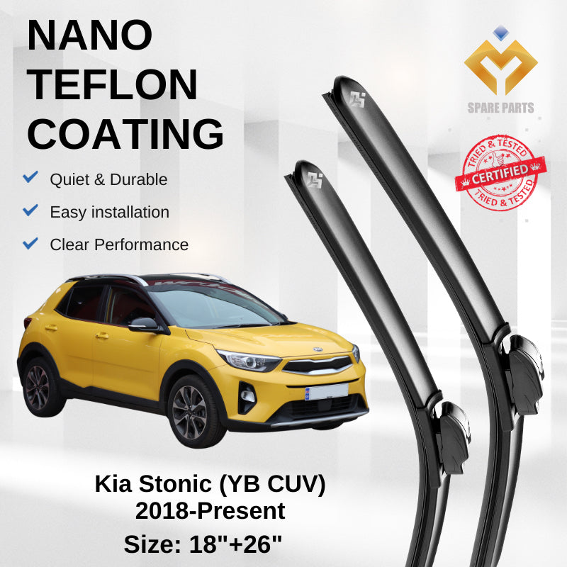 Kia Stonic (YB CUV) 2018-Present Premium Quality Japan Tech Car Wiper 1set 18"+26" U Hook Free Microfibre Cloth