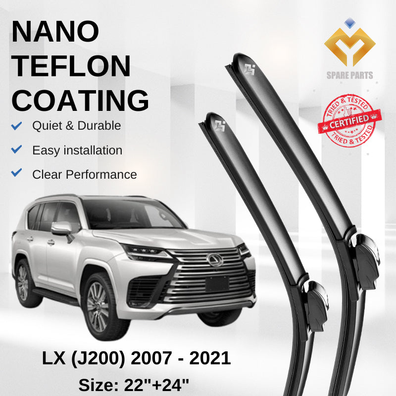 Lexus LX J200 (2007-2021) Premium Japan Tech Car Wiper 22"+24" Universal Hook, Free Microfibre Cleaning Cloth
