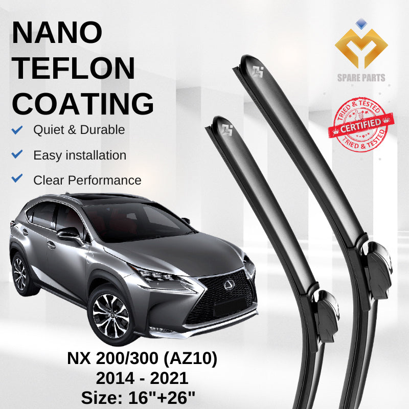 Lexus NX 200/300 AZ10 (2014-2021) Premium Japan Tech Car Wiper 16”+26” Type 12 Clip, Free Microfibre Cleaning Cloth