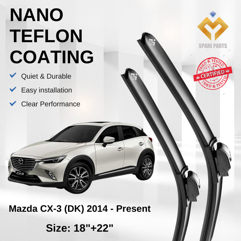 Mazda CX-3 1st Gen 2014 Premium Japan Tech Car Wiper Accessories 18”+22” Universal Hook–Includes Free Microfibre Cloth!