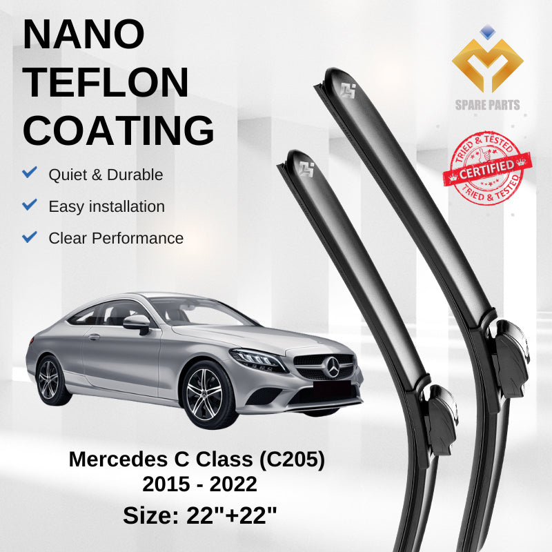 Mercedes C-Class (C205) 2015-2022 Premium Japan Tech Car Wiper Accessories 22”+22” Type 11 Clip- Includes Free Gift
