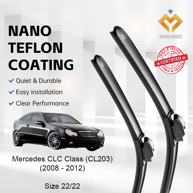 Mercedes CLC Class 2008-2012 CL203 Premium Quality Japan Tech Car Wiper 1set 22"+22" Type 09 Clip-Includes Free Gift
