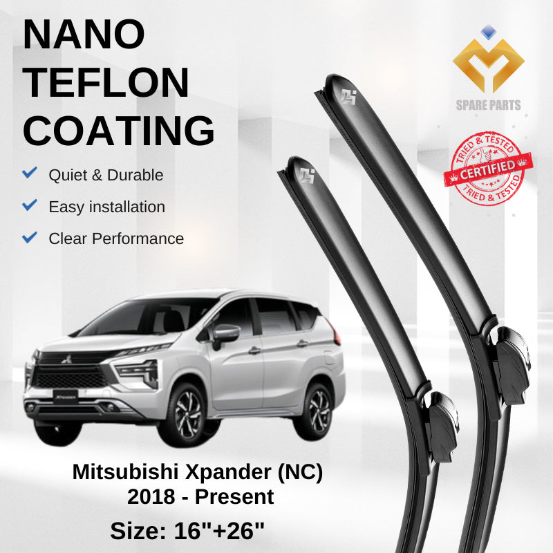 Mitsubishi Xpander 2018 Premium Japan Tech Car Wiper Accessories 16”+26” Universal Hook–Includes Free Microfibre Cloth!