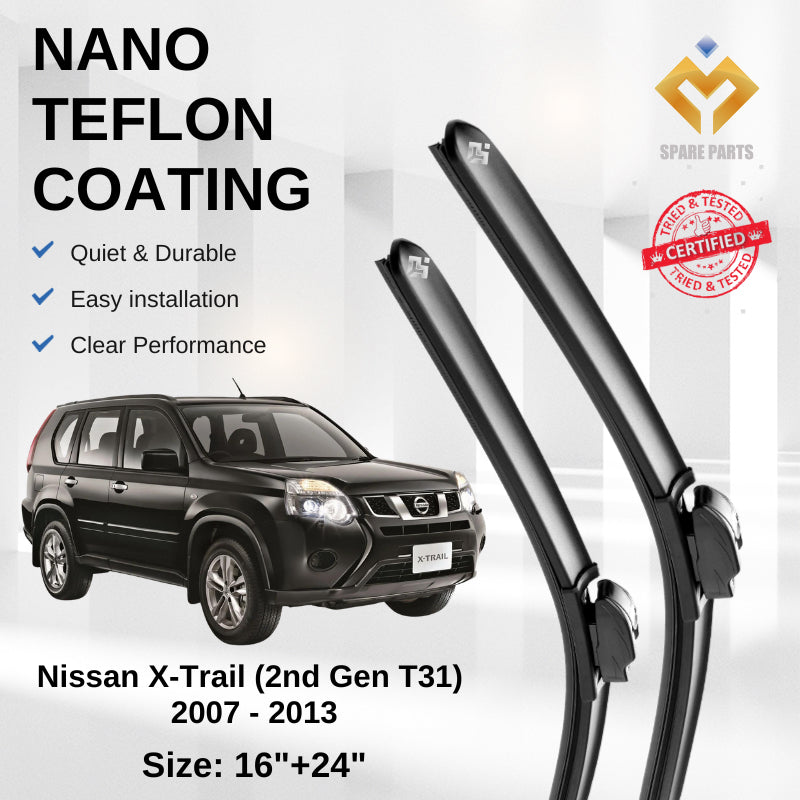 Nissan X Trial 1st 2nd Gen Premium Quality Japan Tech Car Wiper 1set 16"+24" U Hook Free Microfibre Cloth