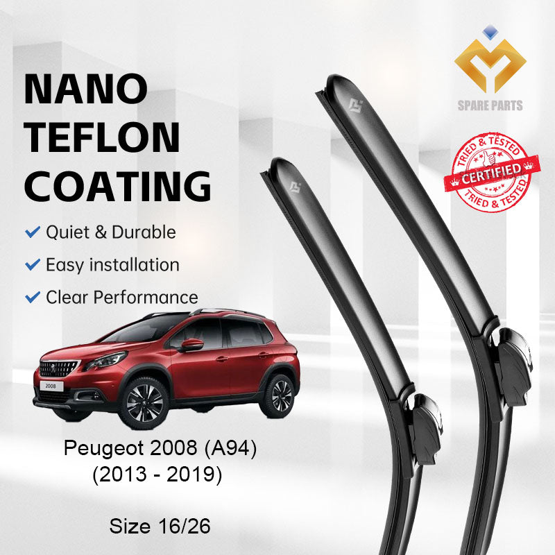 Peugeot 2008 A94 2013-2019 Premium Quality Japan Tech Car Wiper 1set 16"+26" Type 01 Clip
