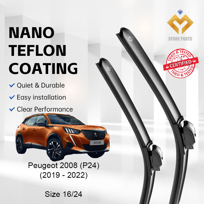 Peugeot 2008 P24 2019-2022 Premium Quality Japan Tech Car Wiper 1set 16"+24" Type 01 Clip-Includes Free Microfibre Cloth