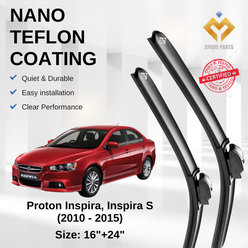 Proton Inspira S 2010-2015 Premium Quality Japan Tech Car Wiper 1set 16"+24" Universal Hook- Free Microfibre Cloth!