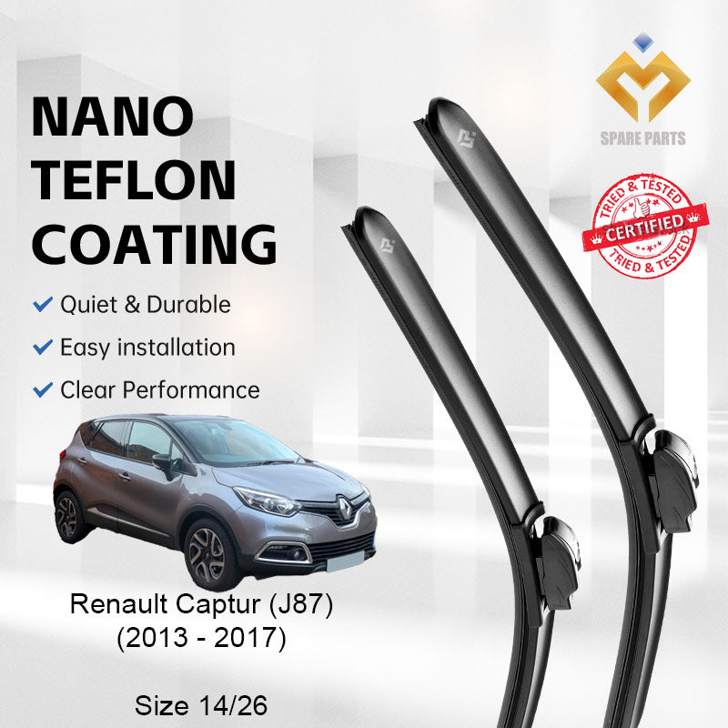 Renault Captur J87 2013-2017 Premium Quality Japan Tech Car Wiper 1set 14"+26" Type 10 Clip-Include Free Gift!