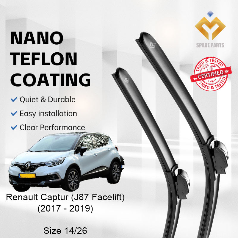 Renault Captur J87 Facelift 2017-2019 Premium Quality Japan Tech Car Wiper 1set 14"+26" Type 15 Clip-Include Free Gift!