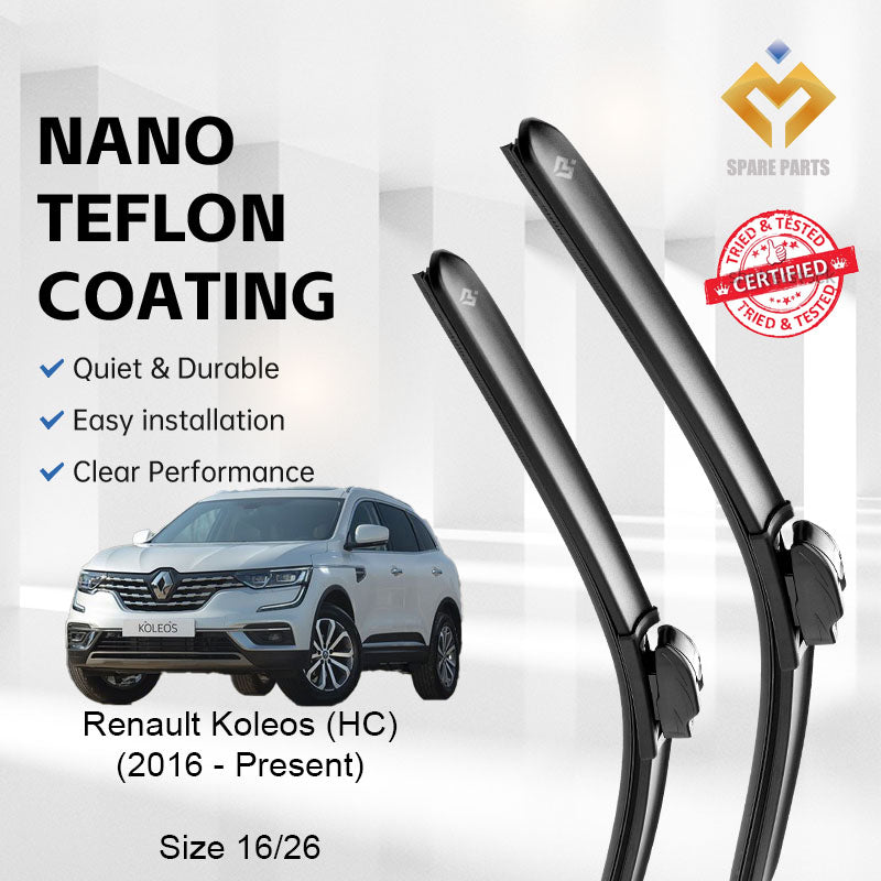Renault Koleos HC 2016-Present Premium Quality Japan Tech Car Wiper 1set 16"+26" U Hook-Include Free Microfibre Cloth