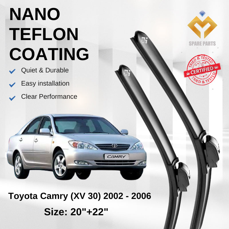 Toyota Camry XV30 2002-2006 Multifit Premium Quality Japan Tech Wiper 1set 20"+22" U Hook, Free Microfibre Cloth