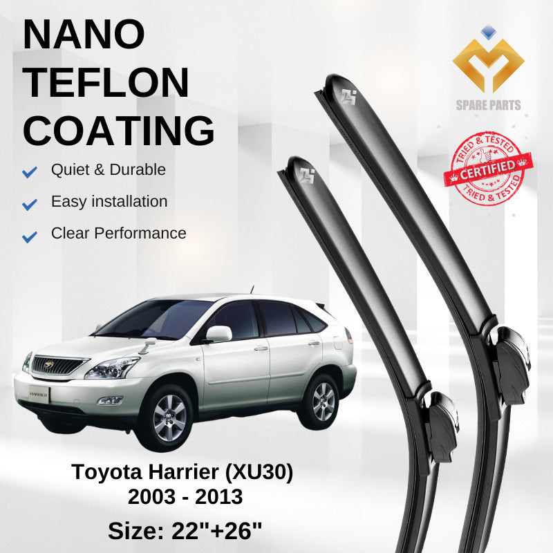 Toyota Harrier XU30 Premium Quality Japan Nano Car Wiper 1set 22"+26" Type 14 Clip Free Microfibre Cloth
