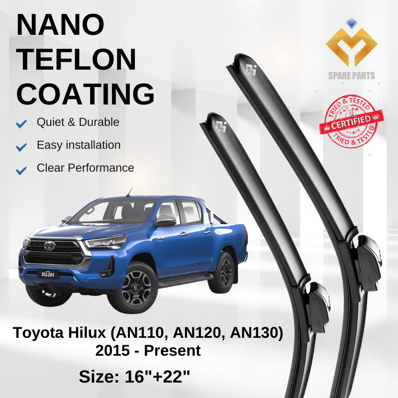 Toyota Hilux AN110/AN120/AN130 Premium Quality Japan Nano Car Wiper 1set 16"+22" U Hook Free Microfibre Cloth
