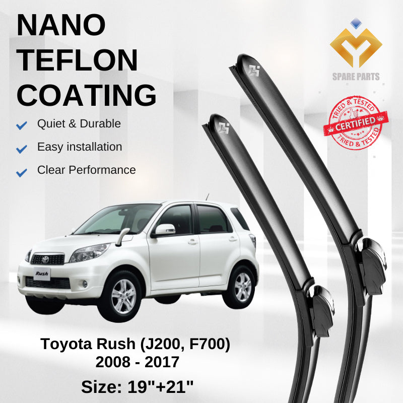 Toyota Rush 2008-2017 Premium Quality Japan Nano Car Wiper 1set 19"+21" U Hook Free Microfibre Cloth