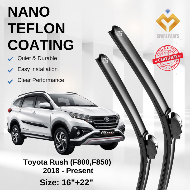 Toyota Rush 2018-Present Premium Japan Tech Car Wiper Accessories 16”+22” Universal Hook–Includes Free Microfibre Cloth!