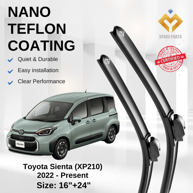 Toyota Sienta (XP210) Premium Quality Japan Tech Car Wiper 1set 16"+24", Type 04 & 12 Free Microfibre Cloth