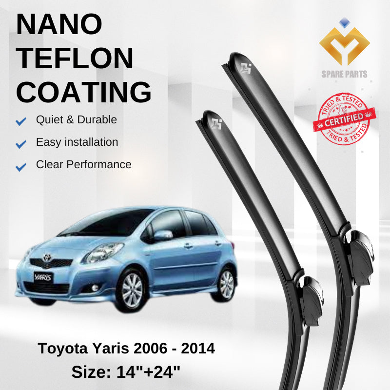 Toyota Yaris 2006-Present Premium Japan Tech Car Wiper Accessories 14”+24” Universal Hook–Includes Free Microfibre Cloth