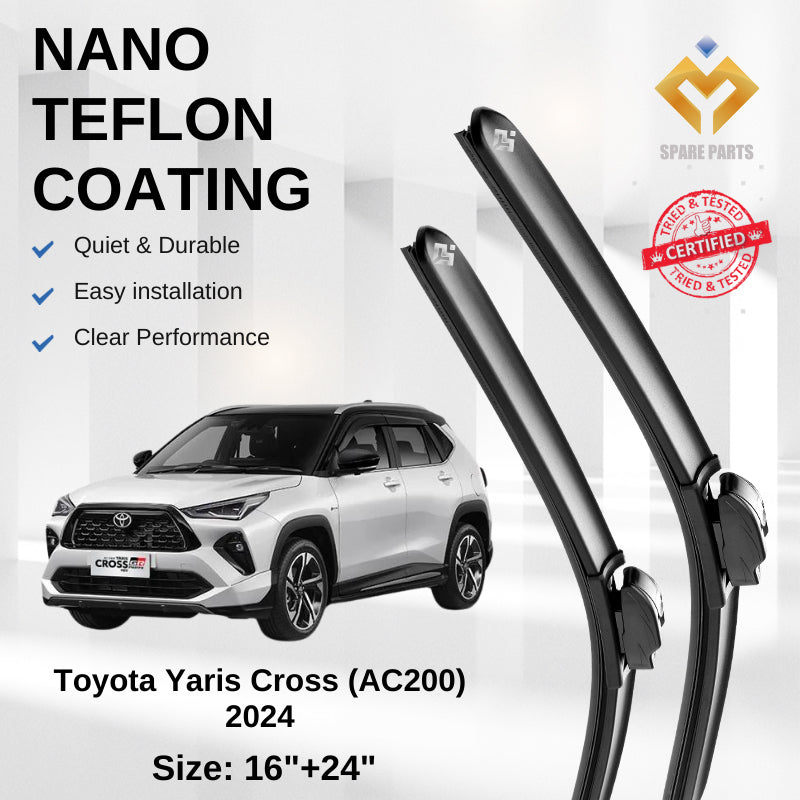 Toyota Yaris Cross AC200 Premium Japan Tech Car Wiper Accessories 16”+24” Universal Hook–Includes Free Microfibre Cloth!