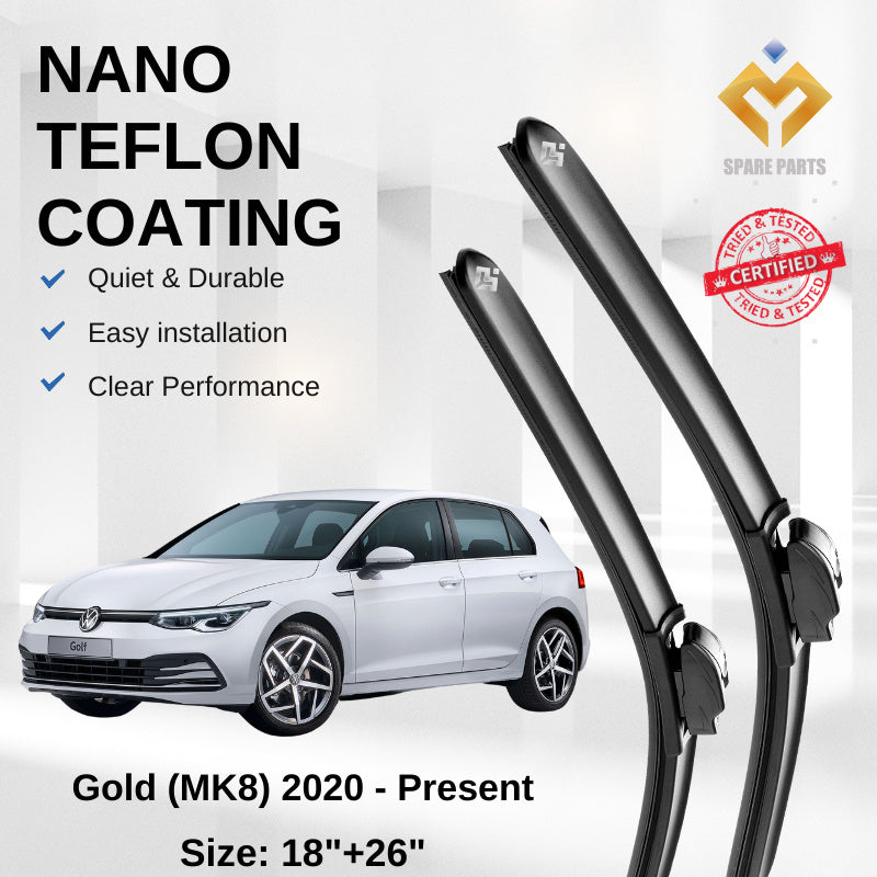 Volkswagen Gold MK8 (2020-Present) Premium Japan Tech Car Wiper 18”+26” Type 04 Clip, Free Microfibre Cleaning Cloth