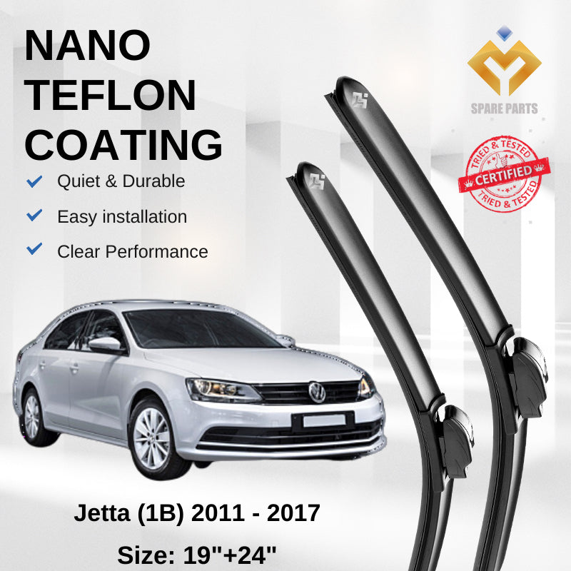 Volkswagen Jetta 1B (2011-2017) Premium Japan Tech Car Wiper 19”+24” Type 04 Clip, Free Microfibre Cleaning Cloth