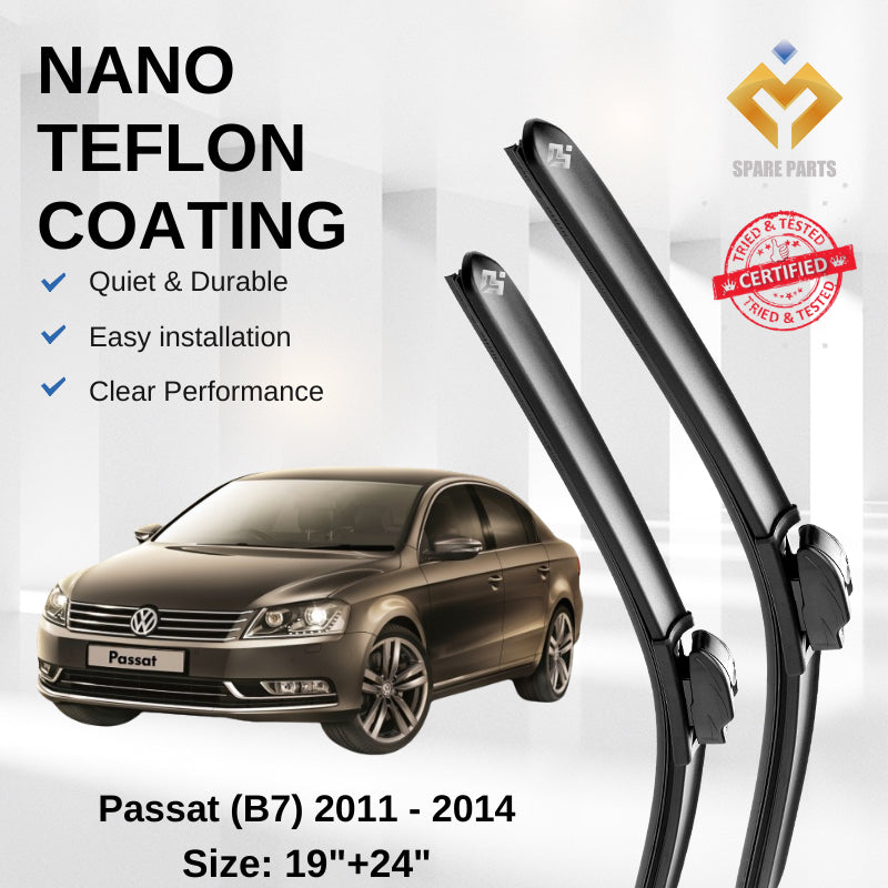 Volkswagen Passat B7 (2011-2014) Premium Japan Tech Car Wiper 19”+24” Type 04 Clip, Free Microfibre Cleaning Cloth