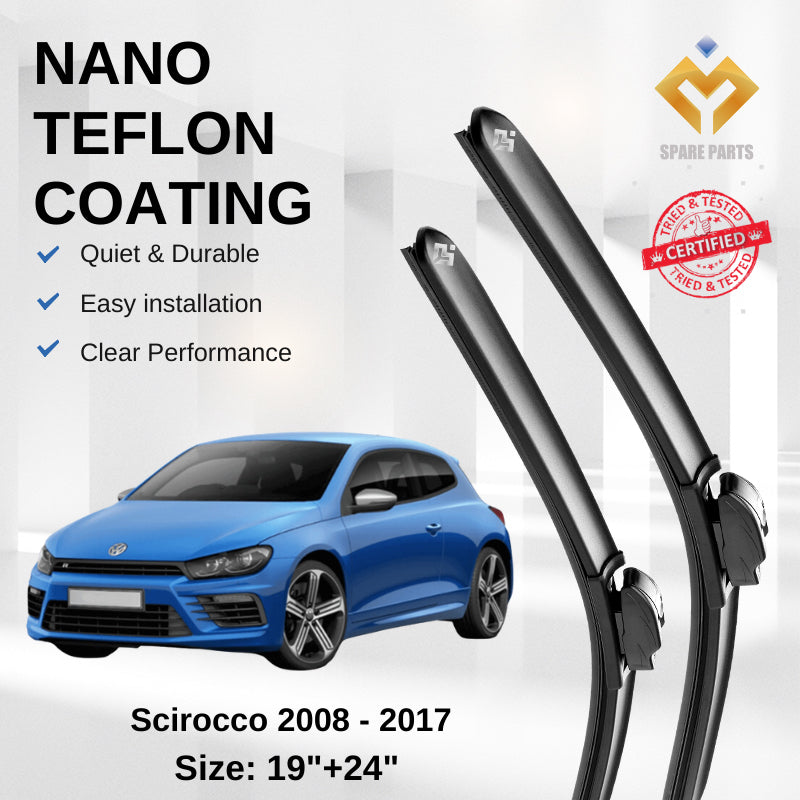 Volkswagen Scirocco (2008-2017) Premium Japan Tech Car Wiper 19”+24” Type 01 Clip, Free Microfibre Cleaning Cloth
