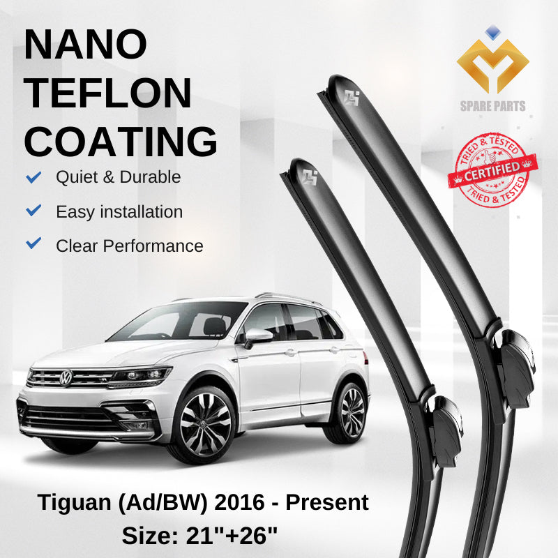 Volkswagen Tiguan Ad/BW (2016-Present) Premium Japan Tech Car Wiper 21”+26” Type 04 Clip, Free Microfibre Cleaning Cloth