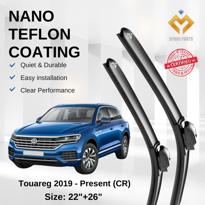 Volkswagen Touareg CR (2019-Present) Premium Japan Tech Car Wiper 22”+26” Type 04 Clip, Free Microfibre Cleaning Cloth